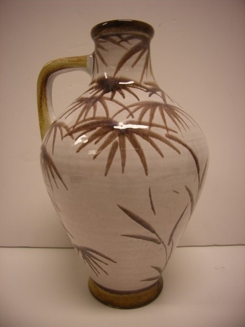 OverviewBeautiful handled vase from the 1980's decorated with cranes in a jungle environment. Highly decorative and in excellent condition. 27 cms. D774
